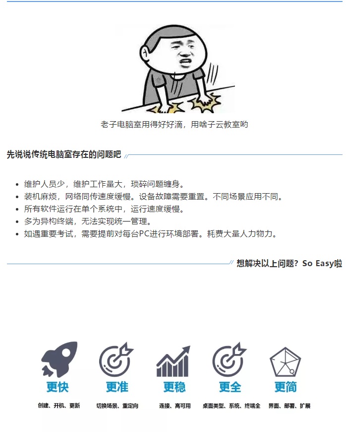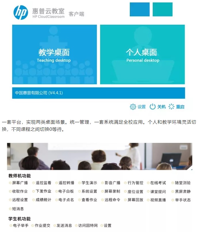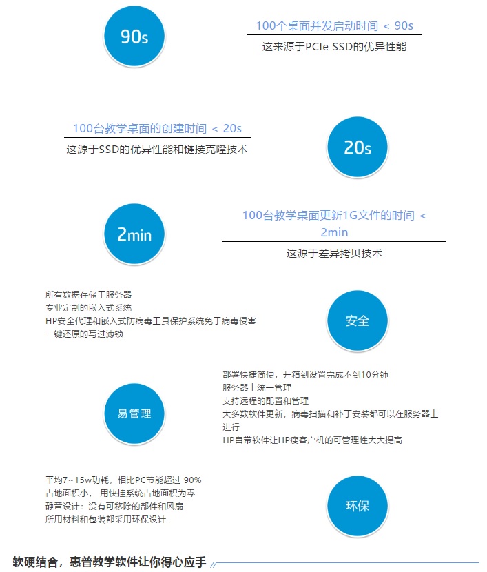 惠普云教室目前拥有VDI和VOI两种架构的解决方案。拥有多款ARM和X86架构瘦终端、胖终端,轻松应对各种使用场景。再有融合版解决方案的加持,当然是云教室的**选择!